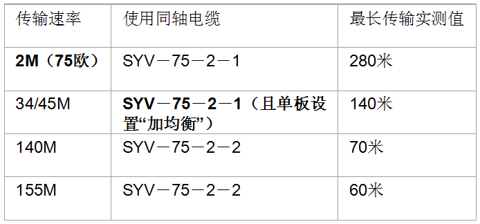 電信號在電纜中的最長傳輸距離與該電接口的輸出口規(guī)范、輸入口規(guī)范、同軸線的 衰減有關(guān)。