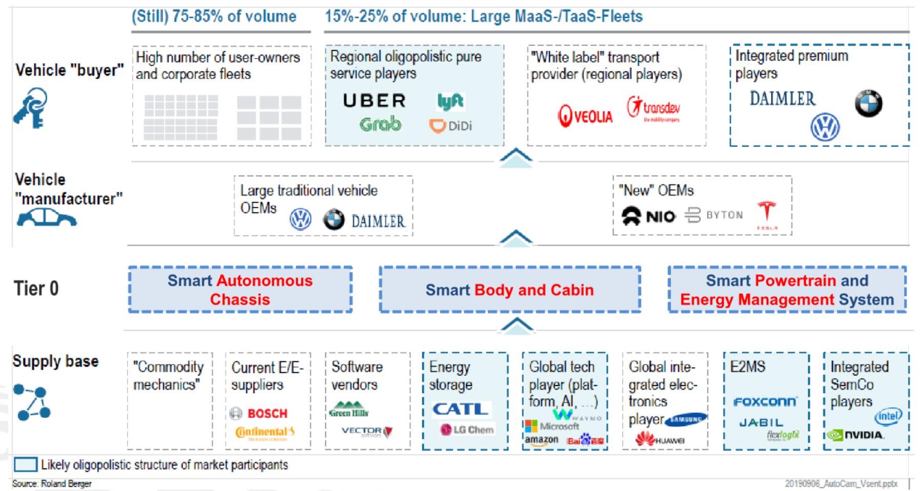 如果這個趨勢或預言是真的,那么它對整個汽車產業的結構調整,恐怕就不是我們先前討論的那么簡單了。一方面原本與汽車行業無關的產業也會納入到汽車產業鏈體系——這個是我們在先前的文章中不止一次提到的;另一方面,原本OEM廠主導的產業格局,會轉為第三方平臺主導,比如像滴滴這樣的網約車平臺,或者上汽EVCARD分時租賃平臺。