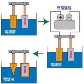 電鍍: 電鍍是指借外界電流的作用,在溶液中進(jìn)行電解反應(yīng),使需要涂覆的物質(zhì)表面沉積上一層均勻、致密的金屬或合金的過(guò)程。電鍍反應(yīng)原理是原電池反應(yīng)。電鍍時(shí)陽(yáng)極發(fā)生氧化反應(yīng),溶解失去電子,金屬原子變成陽(yáng)離子;陰極發(fā)生還原反應(yīng), 金屬陰離子得到電子,形成鍍層。
