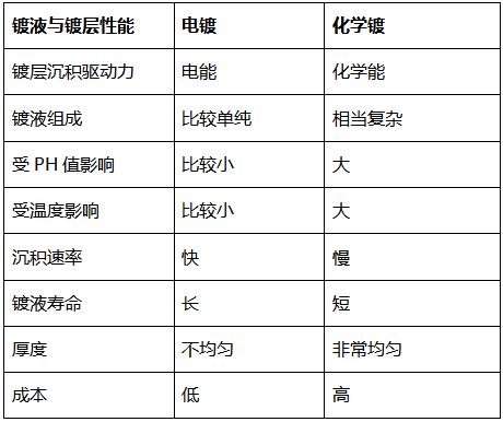 化學(xué)鍍與電鍍的比較