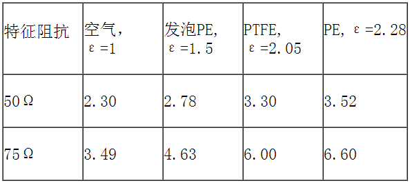 A, 特征阻抗: 由傳輸線的電容和電感決定的傳輸線的一種固有特征,反映了電場和磁場在傳輸線的分布狀況,只要傳輸線的介質是均勻的,特征阻抗是一個常數。在波傳輸過程中,E/H 是不變的。傳輸線本身決定了它的特性阻抗,而且特性阻抗在傳輸線上處處相同。在同軸線纜或同軸連接器,特征阻抗由外導體的內徑,內導體的外徑及內外導體間的介質的介電常數決定,存在如下的量化關系。