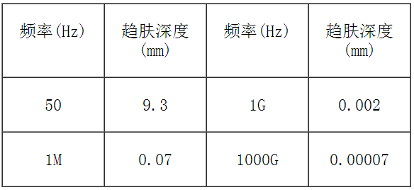 在高頻應用中,射頻同軸連接器也產生一些突出的現象,如趨膚效應(Skin effect):由于電磁感應, 交變電流趨向在連接器外導體的內表面和內導體的外表面傳輸, 頻率越高趨勢越明顯, 當頻率很高時, 95%的電流在連接器外導體的內表面和內導體的外表面3個趨膚深度(Skin depth)范圍內傳輸. 對于銅導體來說, 1個趨膚深度與頻率的關系如下: