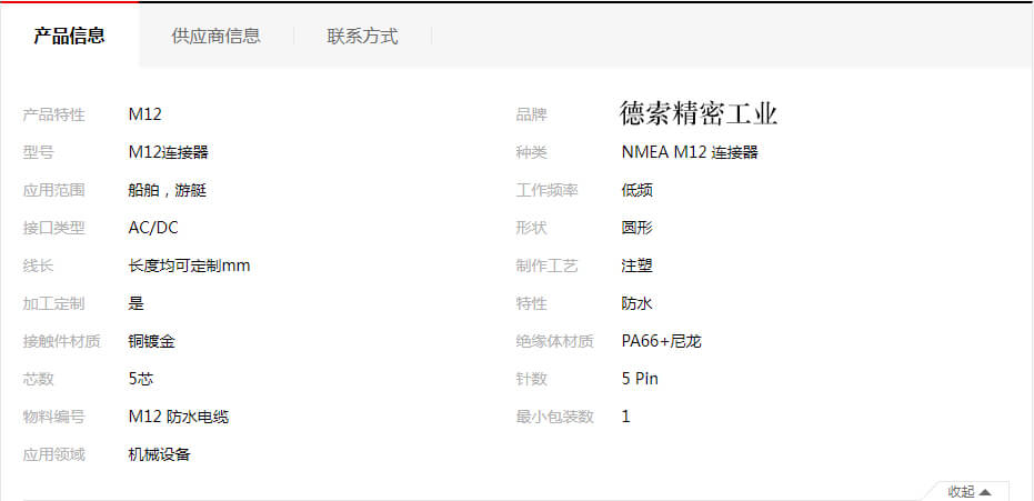 東莞市德索精密工業有限公司,是一家以客戶為中心,以技術為導向的研發型企業,公司主要致力于連接器和自動化元器件開發,生產和銷售,主要研發產品包括工業線束連接器(M5 M8 M12 M16 M23自動化線束接頭),AISG 線束通信基站接頭,防水連接器,電磁閥連接器,NMEA 2000線束和連接器,為能源行業,物流行業,基礎設施,工業自動化,物聯網,工業4.0等工業領域的客戶提供可靠的產品和優質高效服務,多年來,我們不斷致力于產品研發,使得企業得到快速的發展,公司擁有完善的全套生產設備及測試儀器,具有雄厚的技術保障能力,擁有完善的質量保障體系。