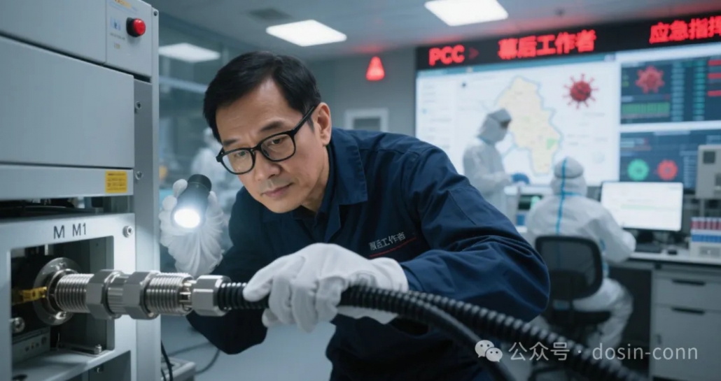 在廣東某防控實驗室里,潮濕的空氣和消毒液的氣味混雜在一起,連接器必須扛得住: