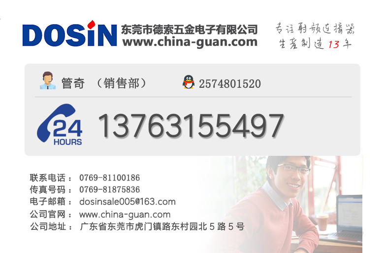 更多關于連接器與工業之間的文章,我們的工防師會陸續整理發布在我們的官網上,感興趣的用戶可及時關注我們的網站動態。如果您有連接器的采購定制需求,可以直接撥打我們的熱線電話:0769-81153906,專人輔助您的采購工作。德索五金電子十三年的電子連接器生產經驗,產品均通過IOS認證,符合國際環保要求,承諾一年內免費享受質保,交期及時,值得用戶的信賴。