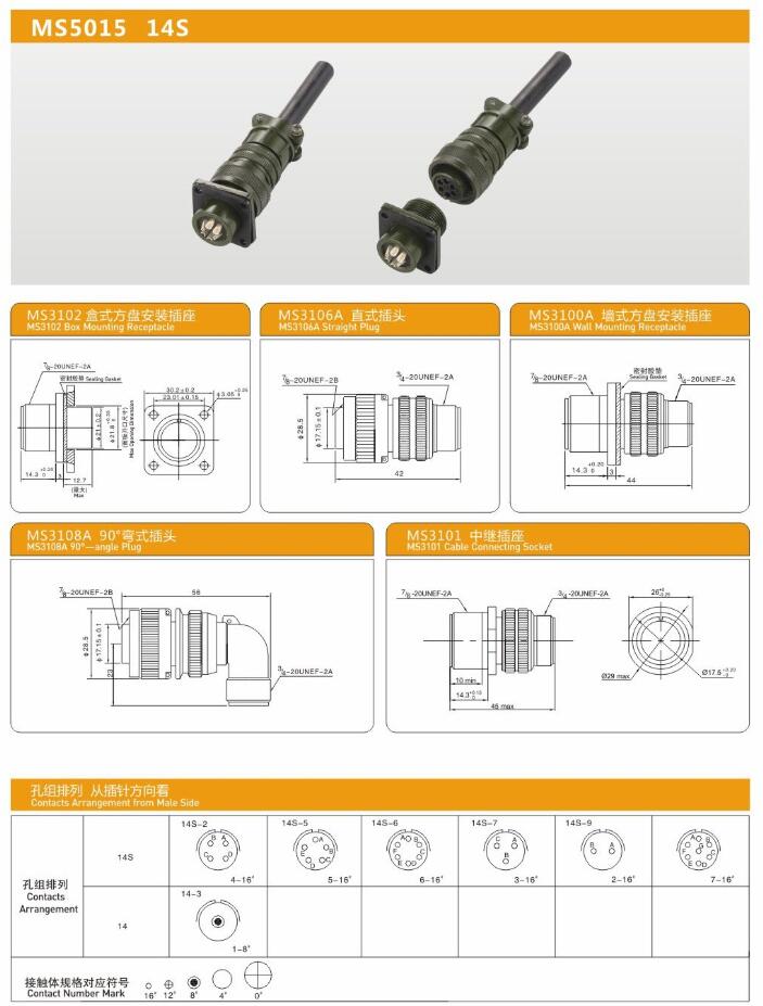 - MS5015-14S良好的密封性能;耐腐蝕防水IP67;良好的導電性能和機械強度;