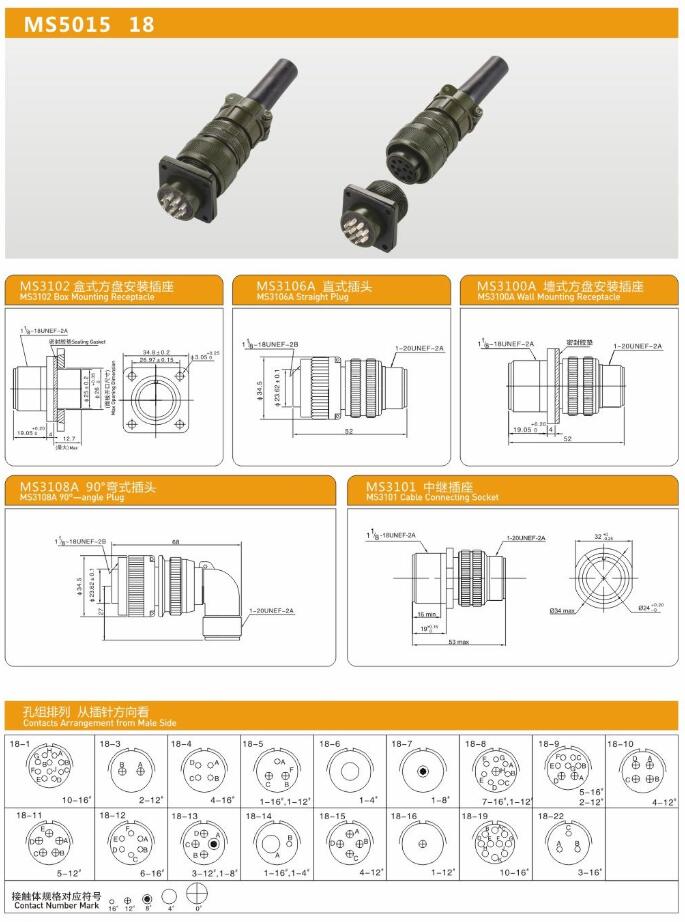5015系列螺紋連接式圓形電連接器MS3108A18-3S