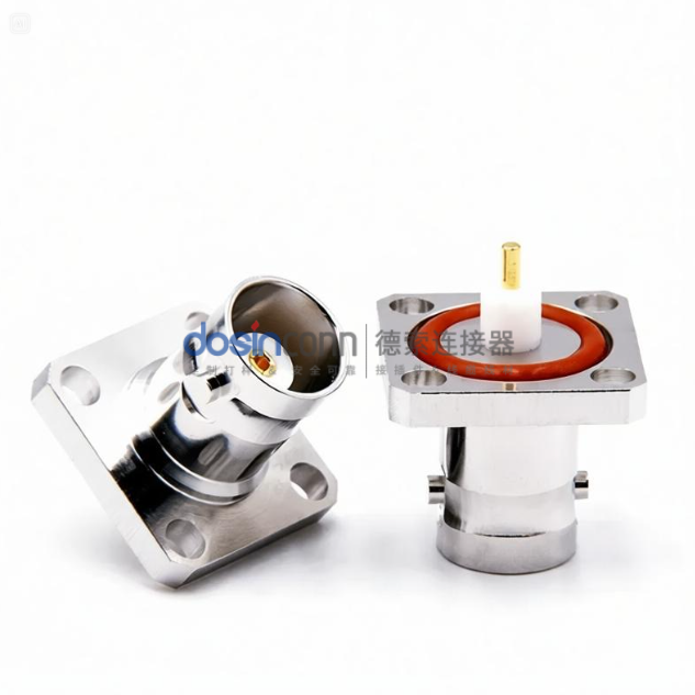 料號:BNC-KFD4M 標簽:BNC連接器、射頻連接器、RF連接器、母頭、直式、50Ω、四孔法蘭