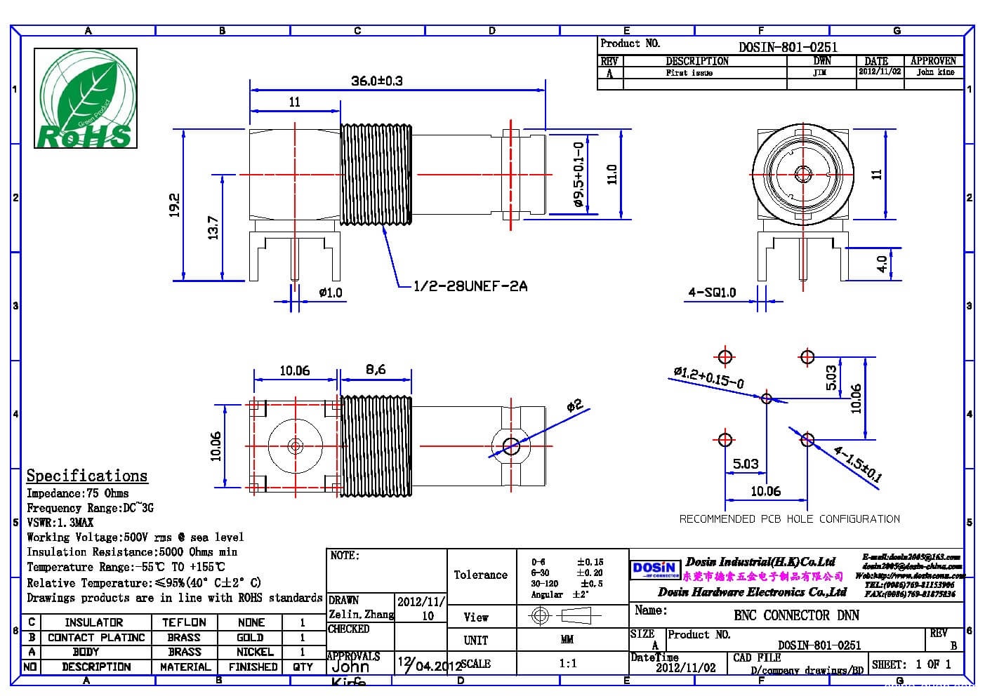 標簽:?母頭, PCB板, 彎插, BNC, 射頻同軸連接器