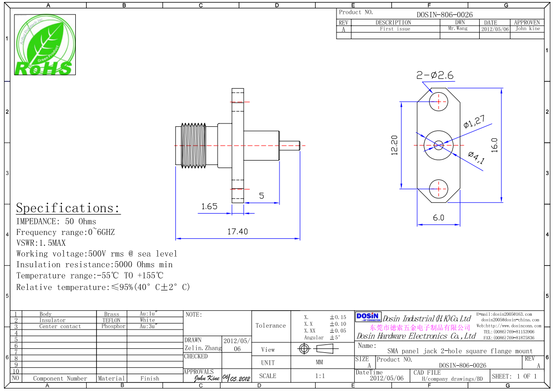 標簽:?PCB板,母頭,直式,50歐姆,法蘭,sma連接器,RF射頻同軸連接器