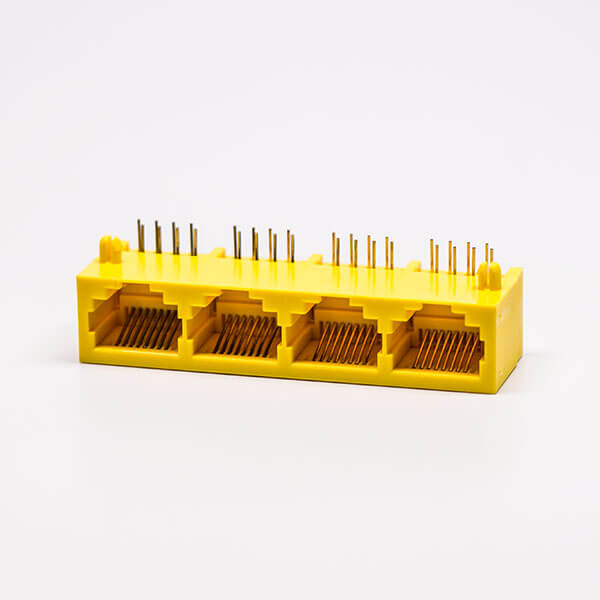 料號:DOSIN-819-0510 標簽:RJ45,母頭,PCB板,8P,四口,彎式,不帶屏蔽,不帶燈,黃色,全塑