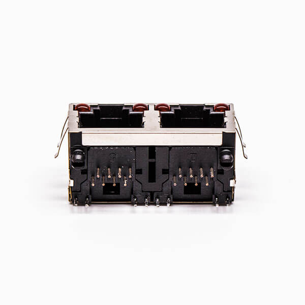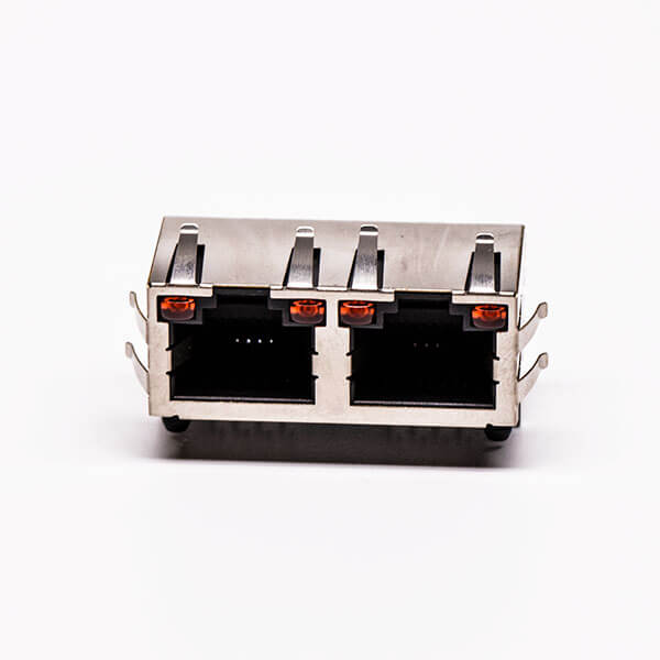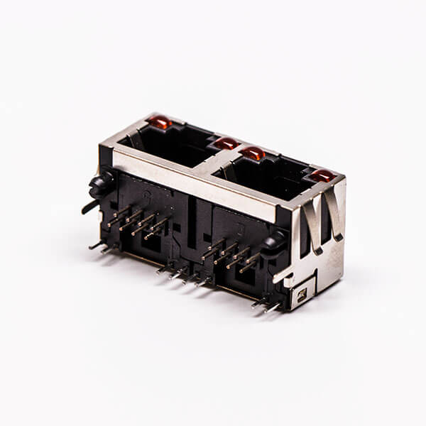 標簽:RJ45,母座,PCB板,8P,雙口,彎式,帶屏蔽,帶燈,帶彈片,全塑,銅殼