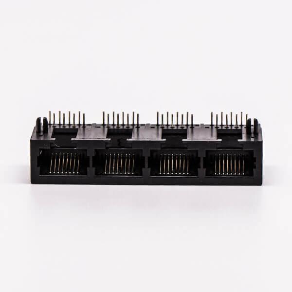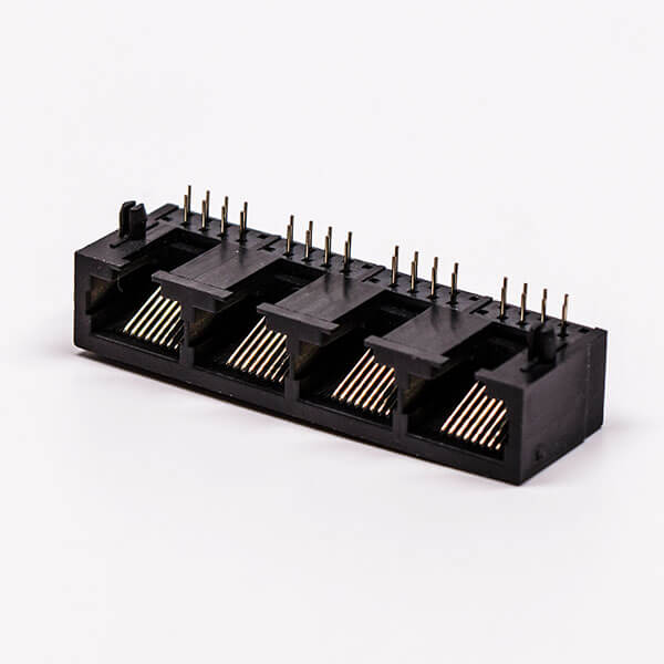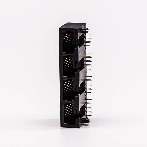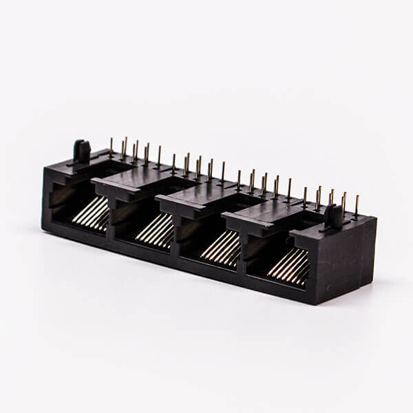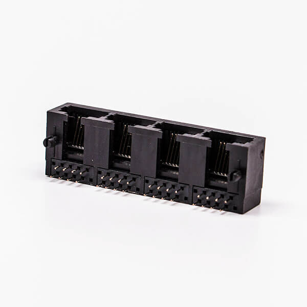 料號:DOSIN-819-0524 標簽:RJ45,母座,PCB板,8P,四口,彎式,不帶屏蔽,不帶燈,黑色,全塑