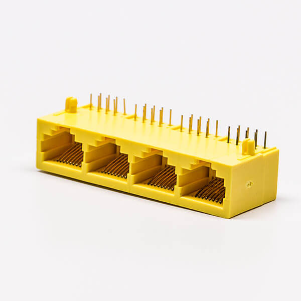 料號:DOSIN-819-0530 標簽:RJ45,母頭,PCB板,8P,四口,彎式,不帶屏蔽,不帶燈,黃色,全塑