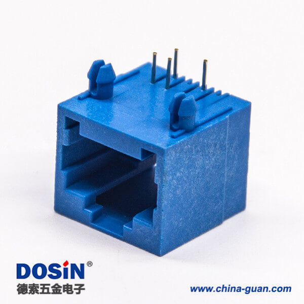 rj11母座藍(lán)色全塑模塊化插座6P4C插PCB板