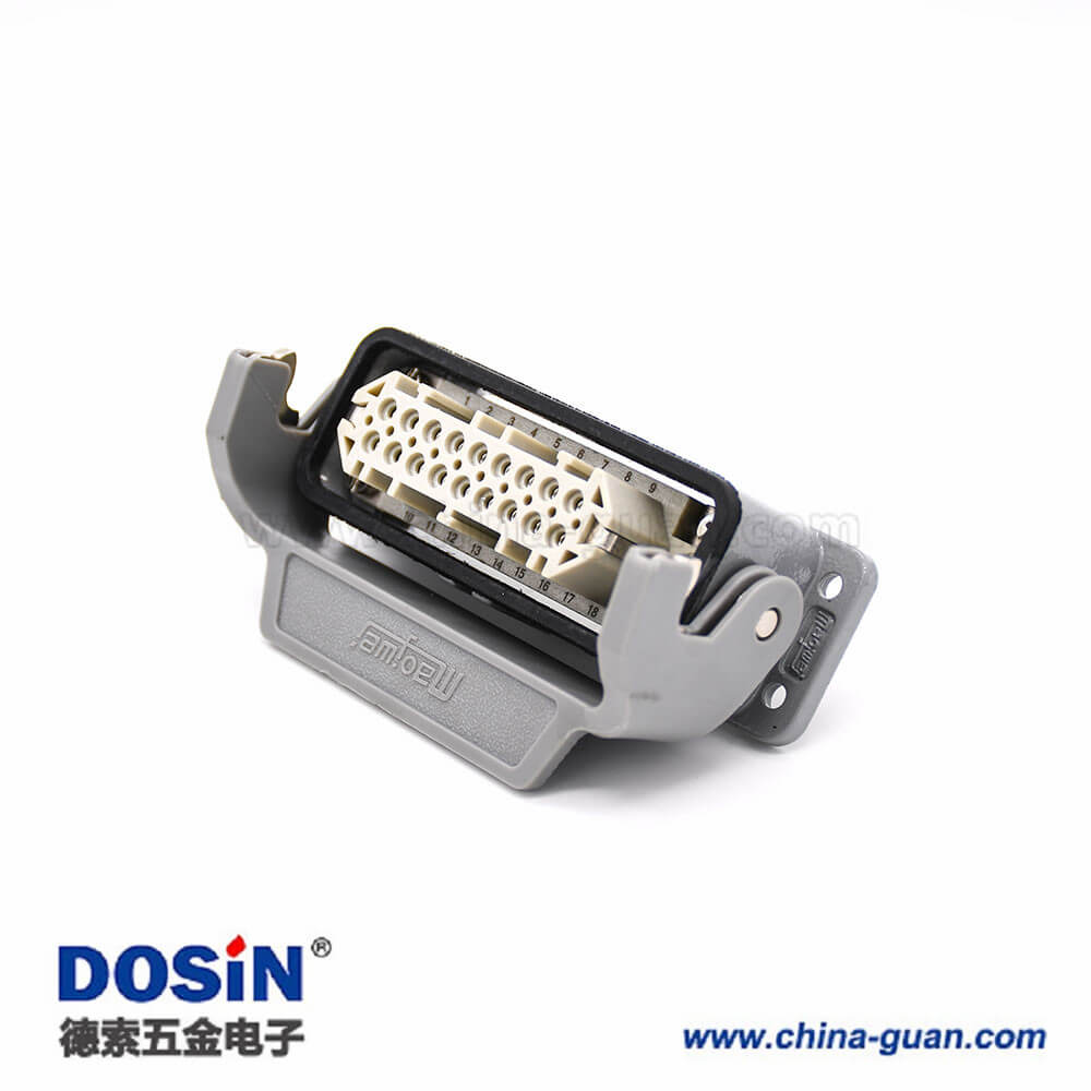 標簽:H16A重載連接器,開孔安裝,高結構斜出口,塑料鐵扣,兩耳,單扣,公母對接,18芯,鍍銀,PG21