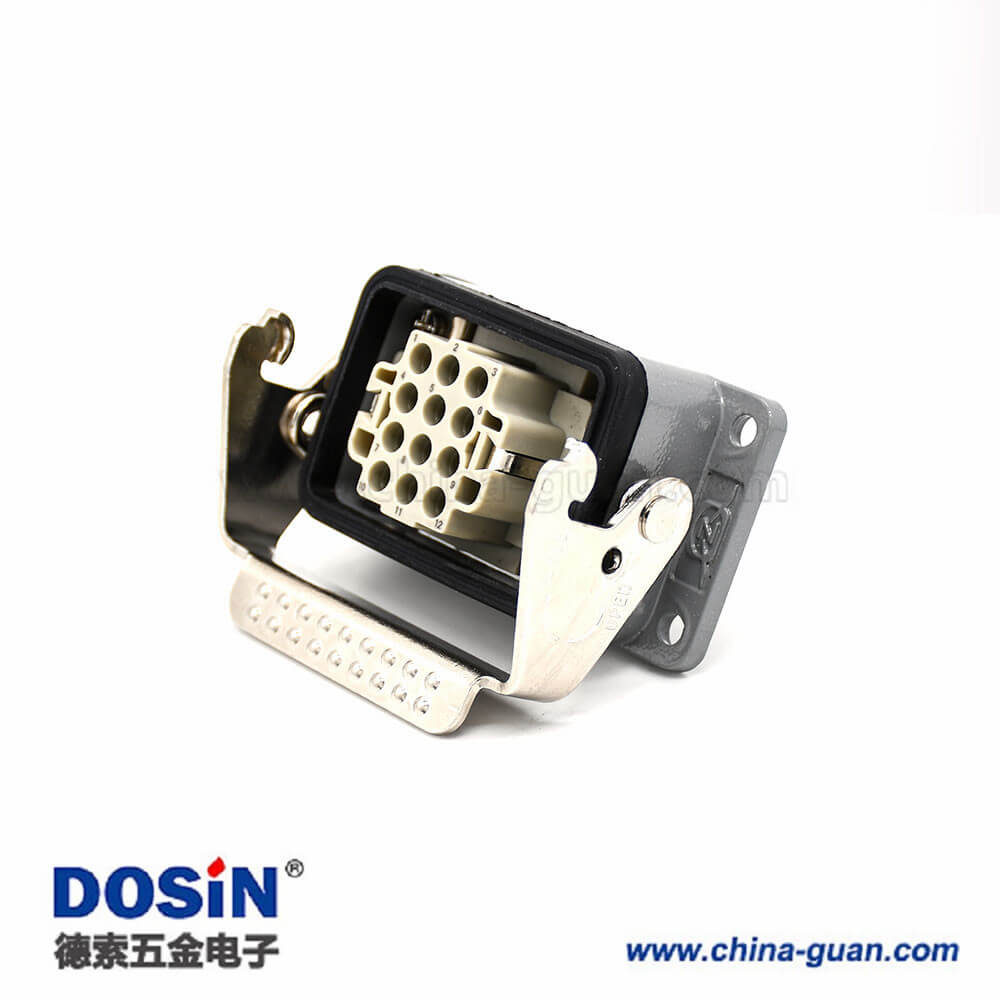 標簽:H6B,重載連接器,開孔安裝,2耳,單扣,高結構斜出口,鐵扣,不帶針公頭,12芯,公母對接,PG21