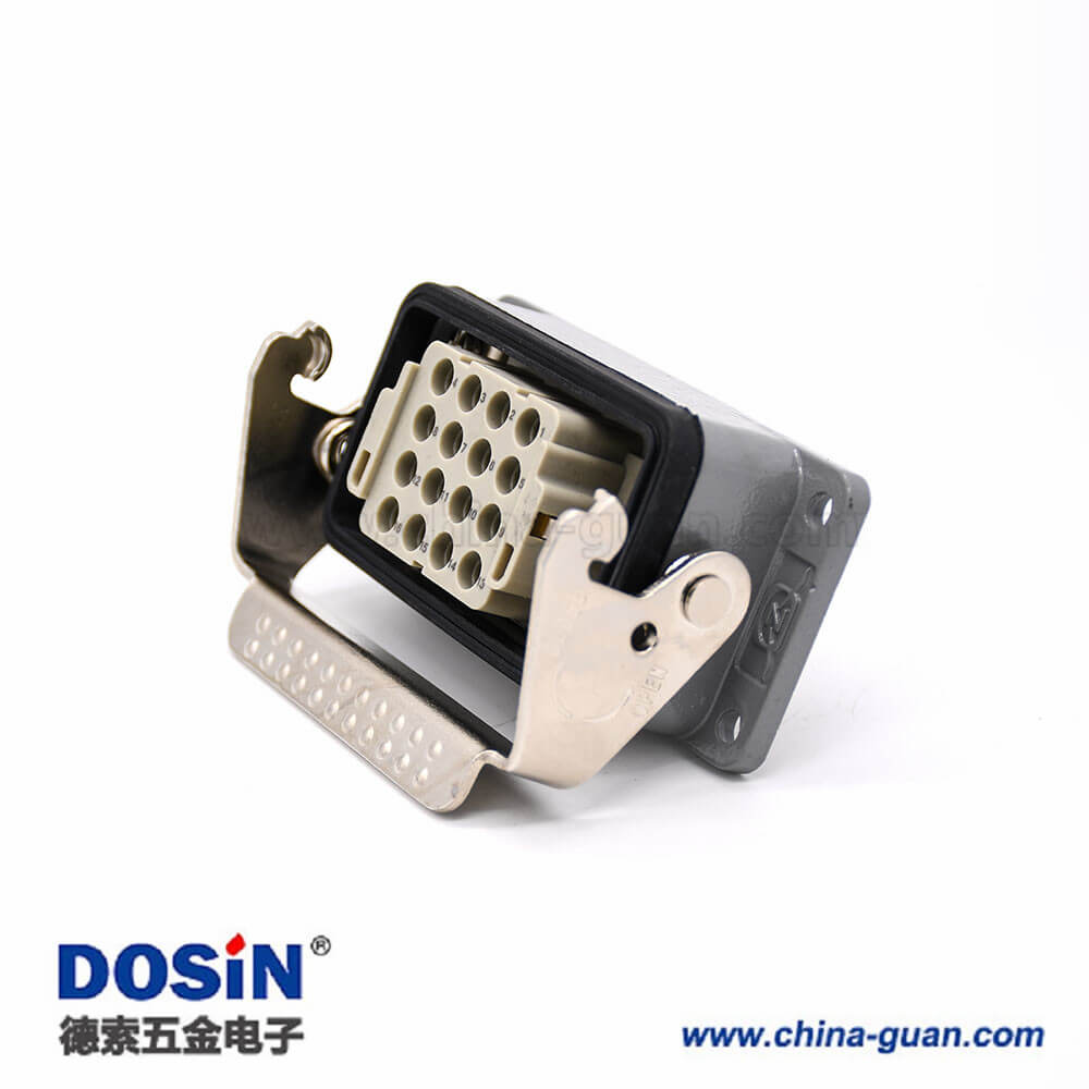 標簽:H10B,重載連接器,開孔安裝,2耳,單扣,頂出口,鐵扣,不帶針公頭,16芯,公母對接,PG16
