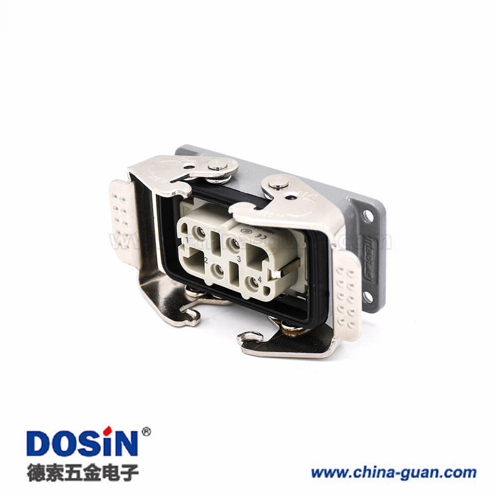 標簽:H10B,重載連接器,開孔安裝,4耳,兩扣,頂出口,鐵扣,4芯,鍍銀,公母對接,M25