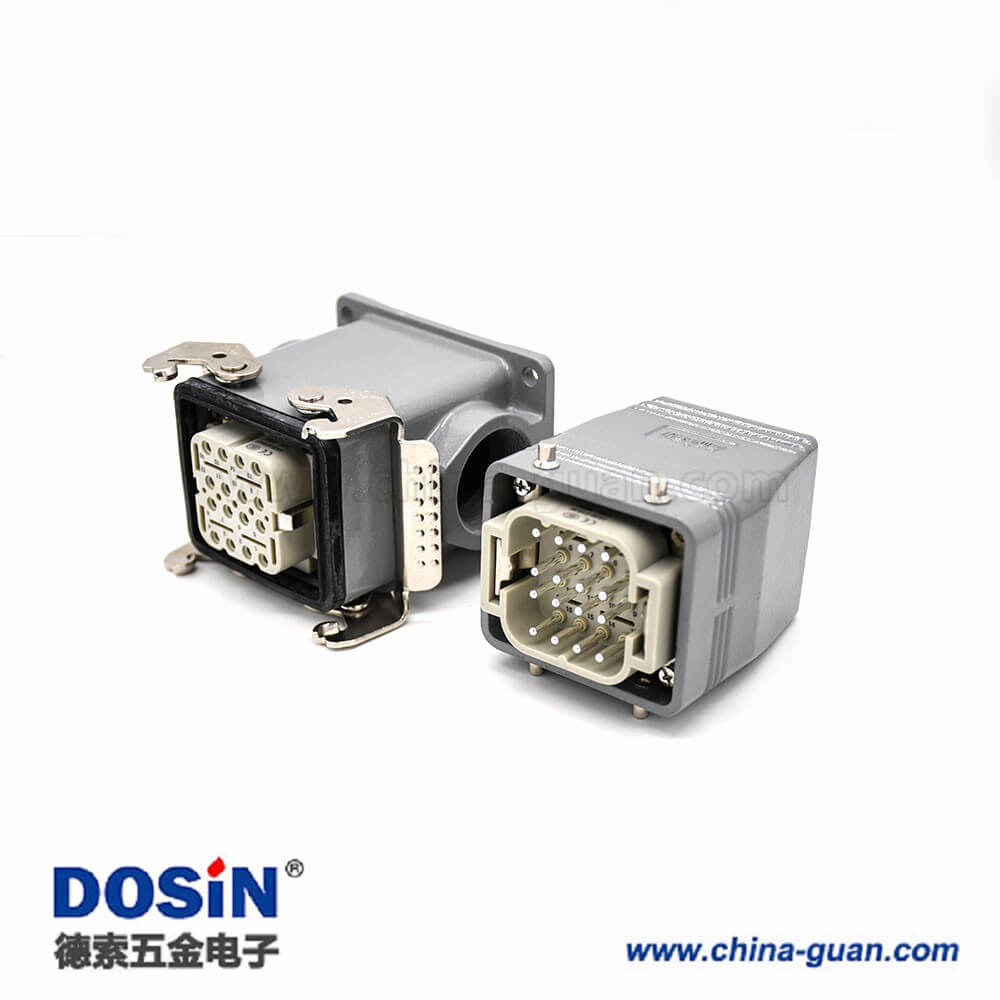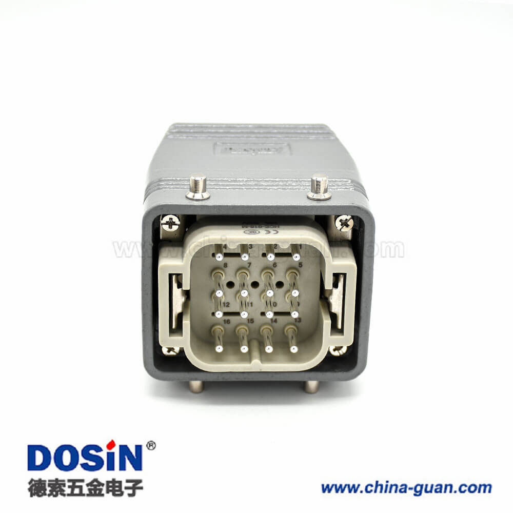 標簽:H6T,重載連接器,加高型表面安裝,4耳,兩扣,高結構頂出口,鐵扣,16芯,鍍銀,公母對接,M32