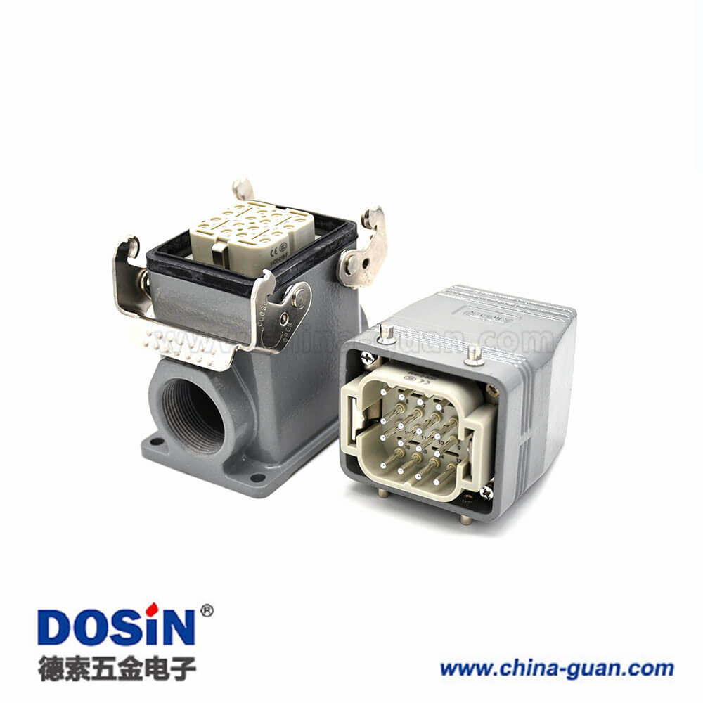 重載工業連接器H6T16芯鍍銀螺紋M32公母對接加高型表面安裝高結構頂出口