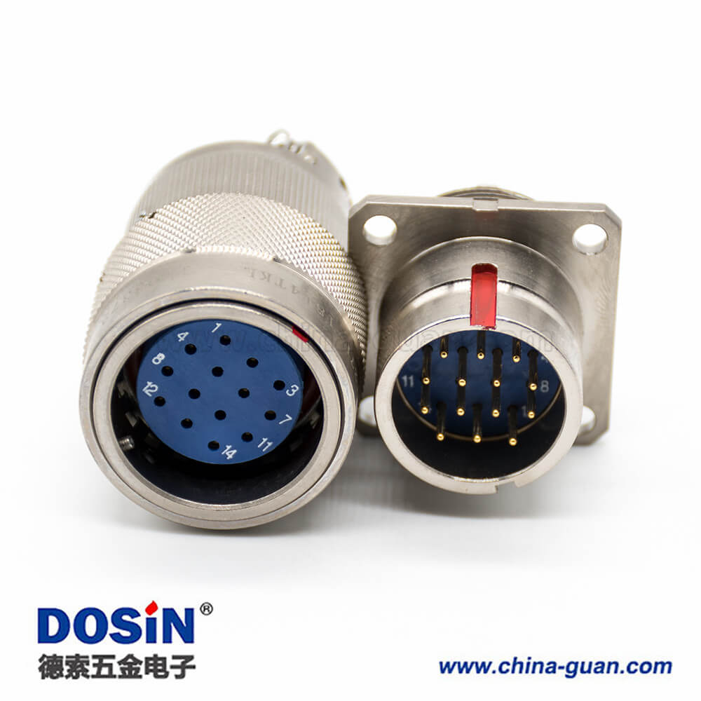 Y27F連接器4孔法蘭工防黃銅14芯18殼體號焊杯直式卡口連接公母對接