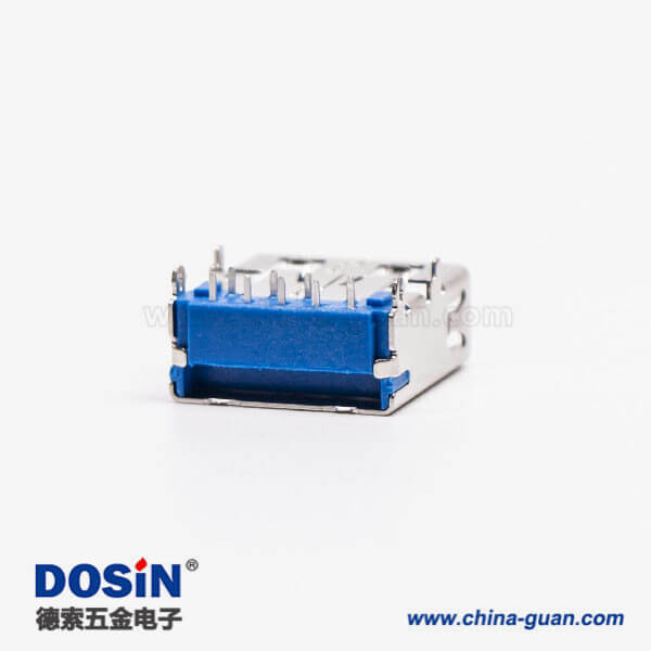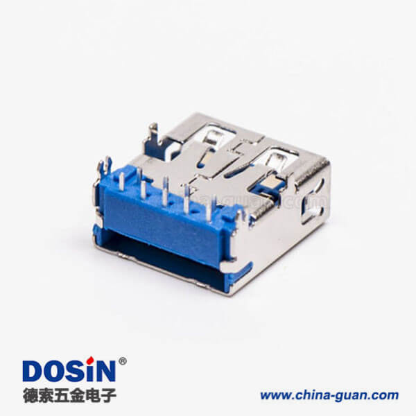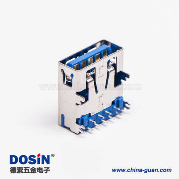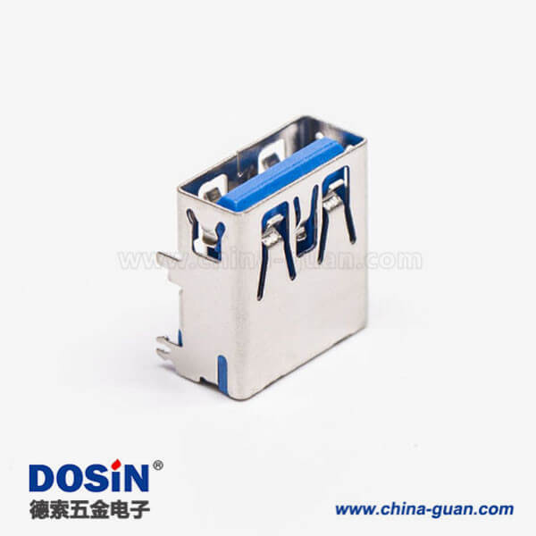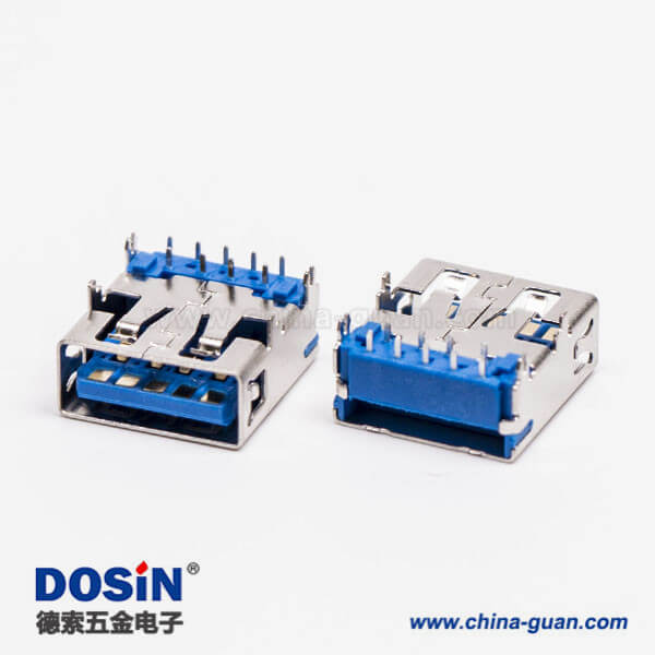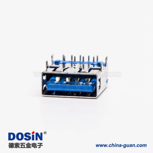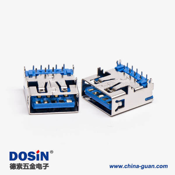 標簽:USB3.0,Type A,母頭,彎頭,插板,DIP,藍色膠芯,PCB板,魚叉腳