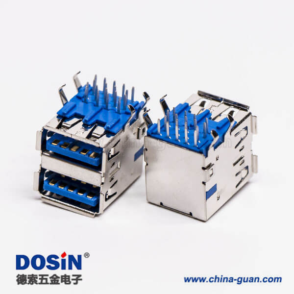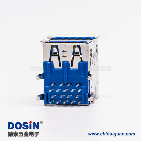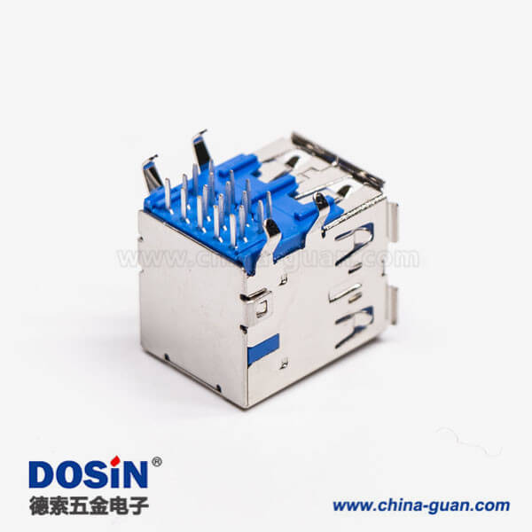 標簽:USB3.0,Type A,雙層,母頭,彎式,插板,DIP,藍色膠芯,PCB板