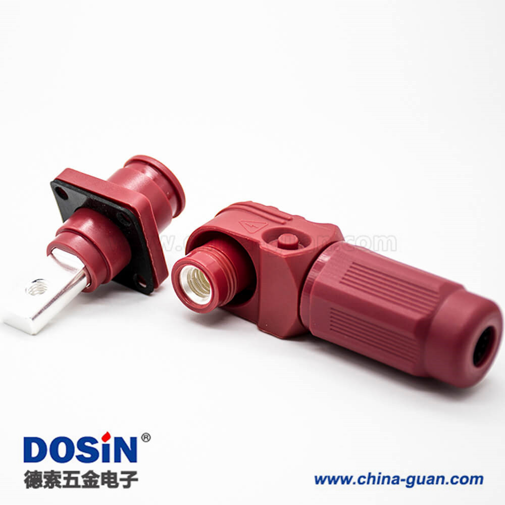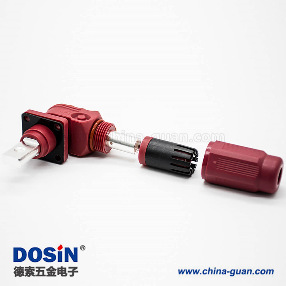 新能源電源儲能連接器單芯14mm公母插座插頭直彎對接400A紅色塑料防水IP67銅牌連接