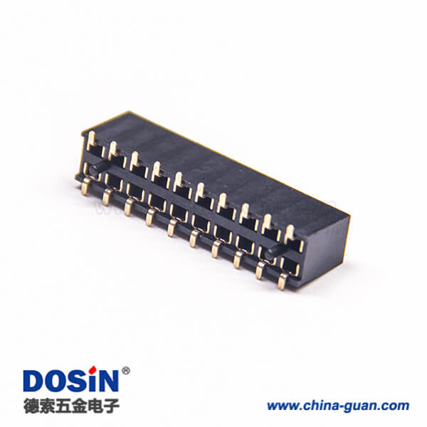 標(biāo)簽:排母連接器,母頭,直式,180度,20Pin,2.54mm,雙排,單塑,貼片,U型針,焊接,鍍金,黑色,H7.1mm,方形