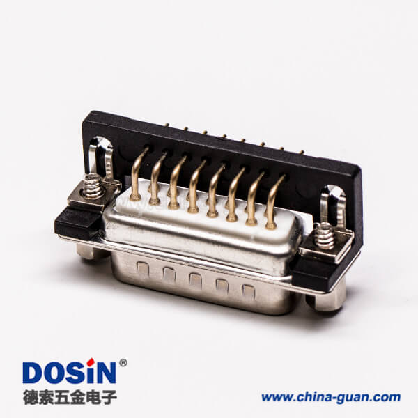 料號:DOSIN-868-0144 標簽:混合型D-sub,15針,彎式,插孔,PCB板,焊板,公座,鉚鎖,魚叉腳