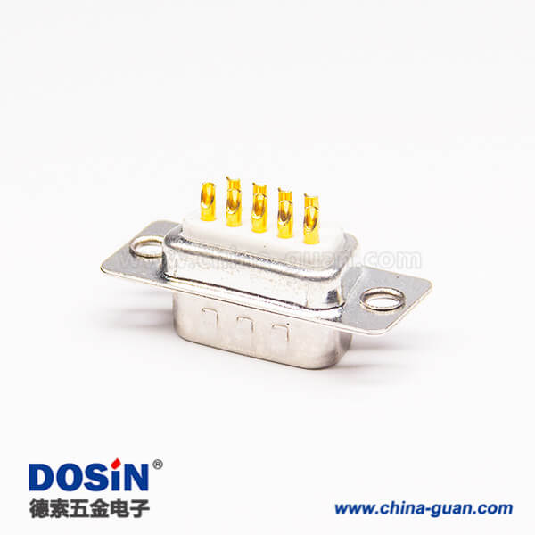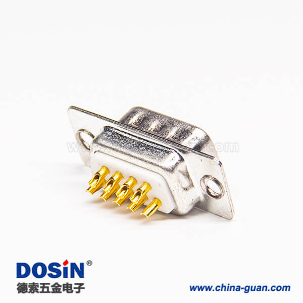 料號:DOSIN-868-0152 標簽:D-sub連接器,車針型,公頭,直式,180度,9 Pin,焊接式,接線,白色膠芯,鍍鎳