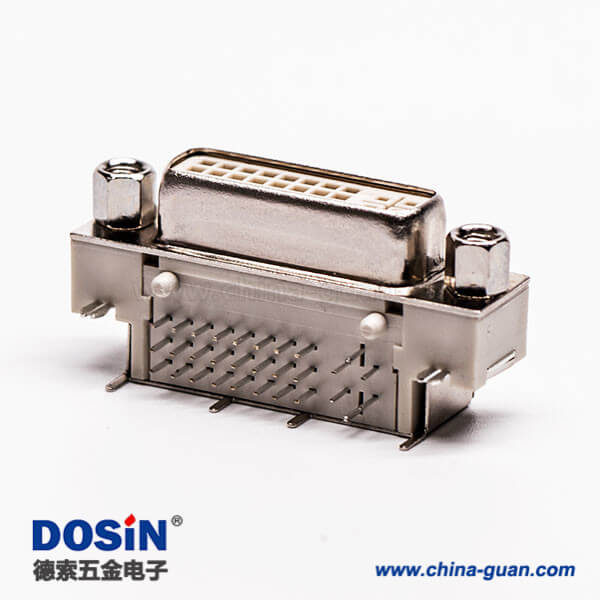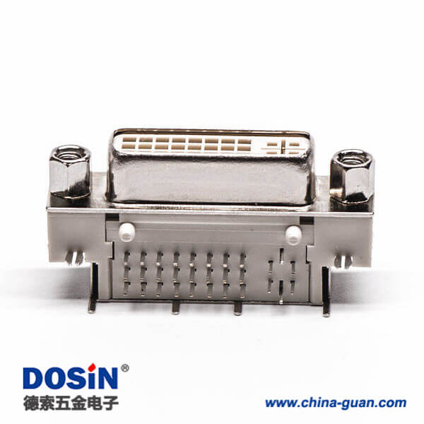 料號:DOSIN-868-0281 標簽:DVI-I 連接器,母頭,彎式,24+5,插板,接PCB板,帶螺母,白色膠芯,帶魚叉腳