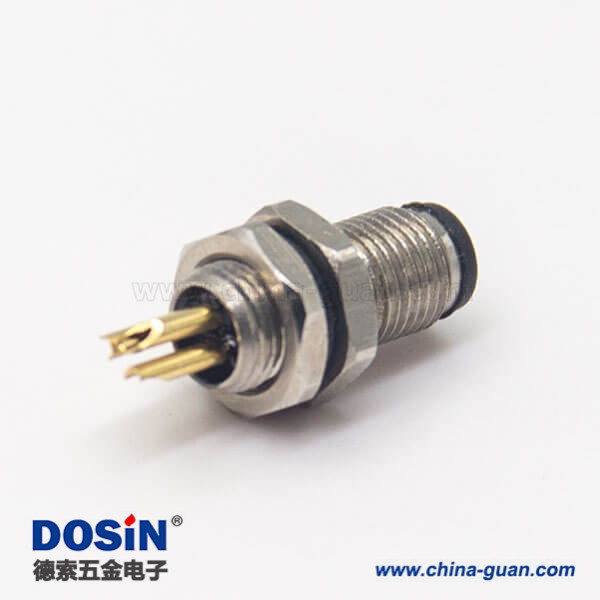 料號:DOSIN-868-0502 標簽:M5, 3芯, 板端插座, 公頭, 直式,焊接, 前鎖穿墻,接面板 / 線材