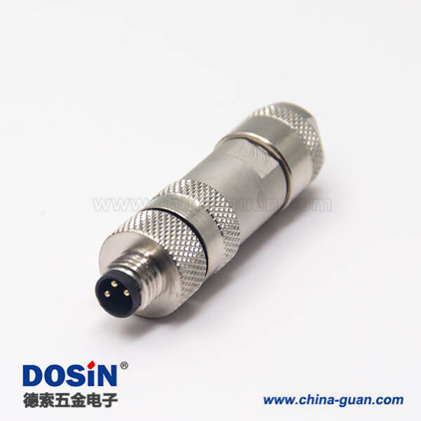 m8連接器接線3pin直式公頭插頭全金屬外殼鎖接式航空插頭