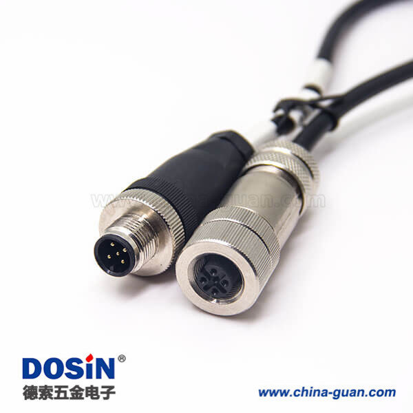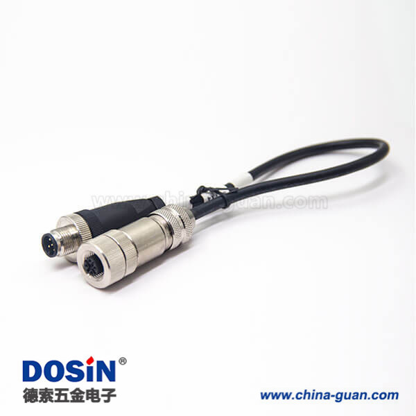 接插件 M12電纜五芯公頭轉(zhuǎn)全金屬母頭直式帶屏蔽