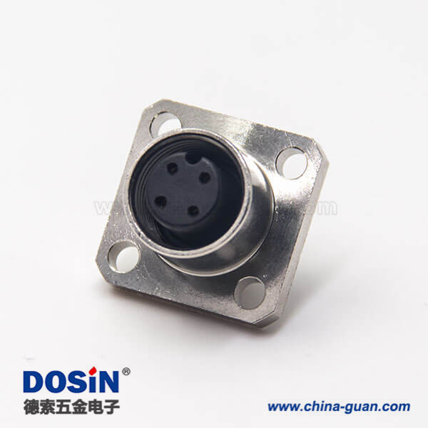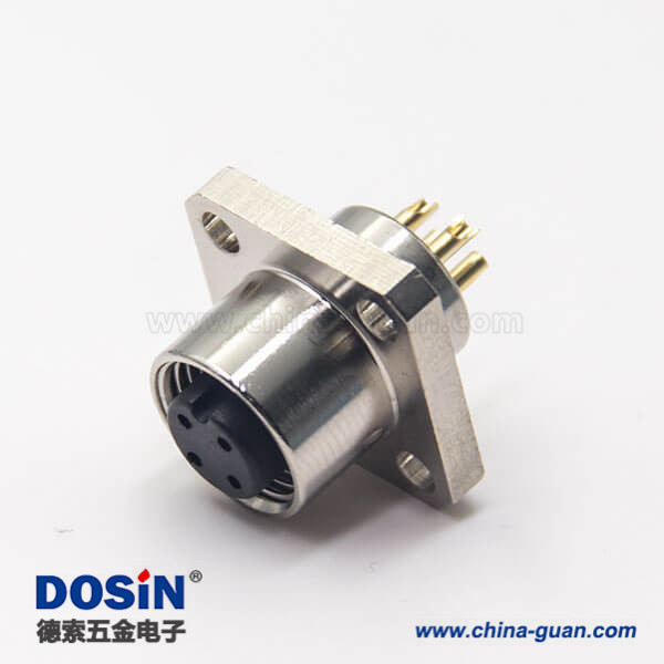 料號:DOSIN-868-0600 標簽:M12板端插座,A編碼,4芯,直式,母頭,焊線,4孔法蘭,面板安裝