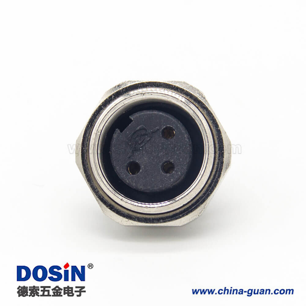 M16 3芯連接器直式母插座前鎖穿墻面板安裝焊線