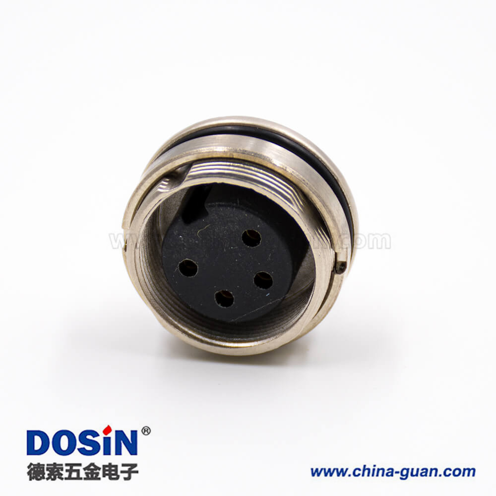 插座母頭M16系列4芯板端插座前鎖穿墻A扣直式焊杯接線連接器