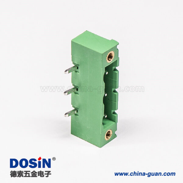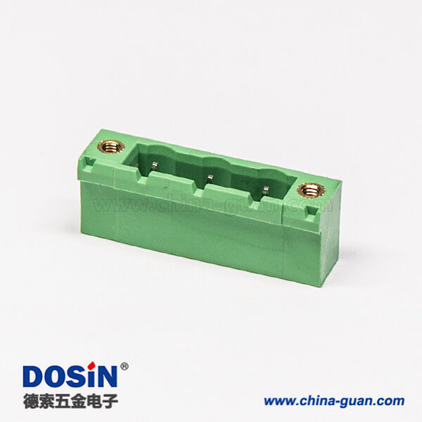 插拔式端子臺3芯2孔法蘭安裝直式綠色端子座
