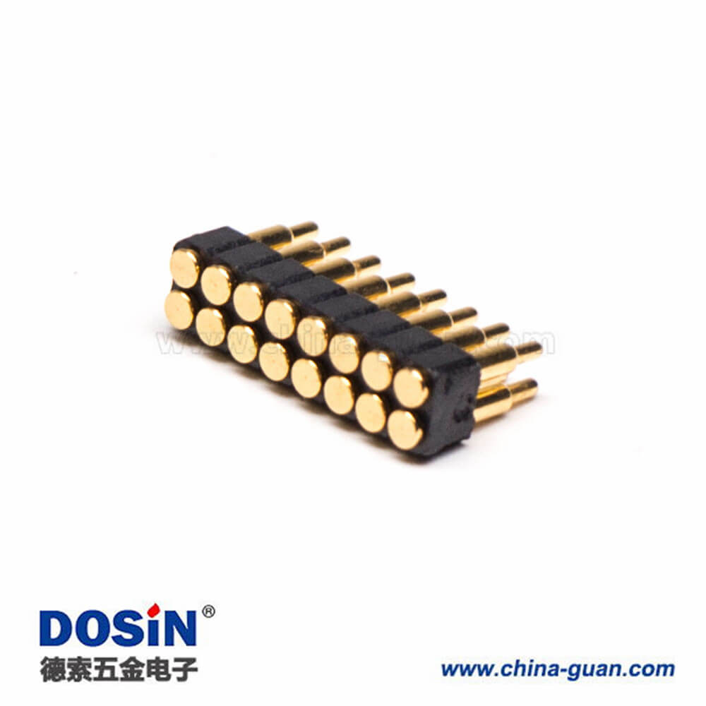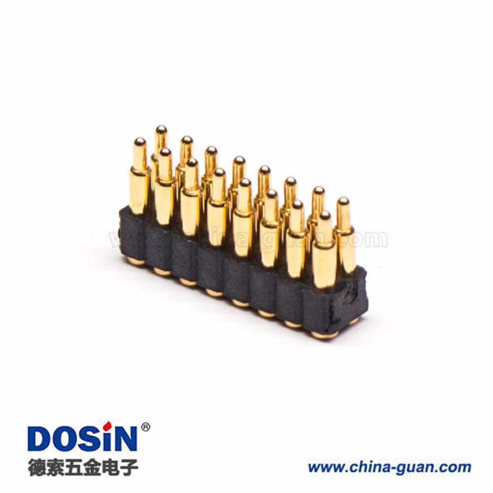料號:DOSIN-903-2006 標簽:Pogo Pin連接器,多Pin系列R型,黃銅,鍍金,側放式,16芯,間距2,普通單頭系列單針,兩排