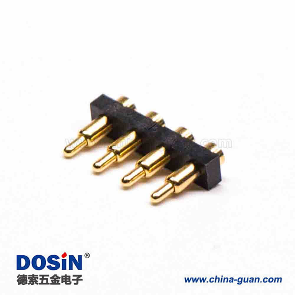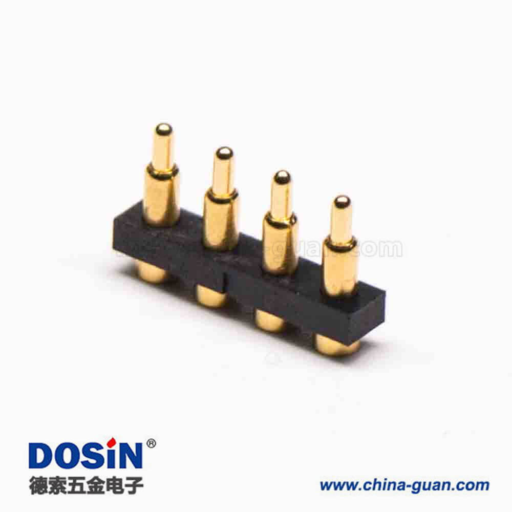 料號:DOSIN-903-2008 標簽:Pogo Pin連接器,多Pin系列R型,黃銅,鍍金,側放式,4芯,間距3,普通單頭系列單針,單排