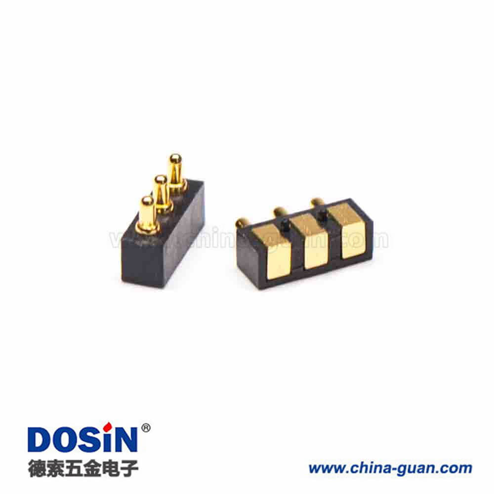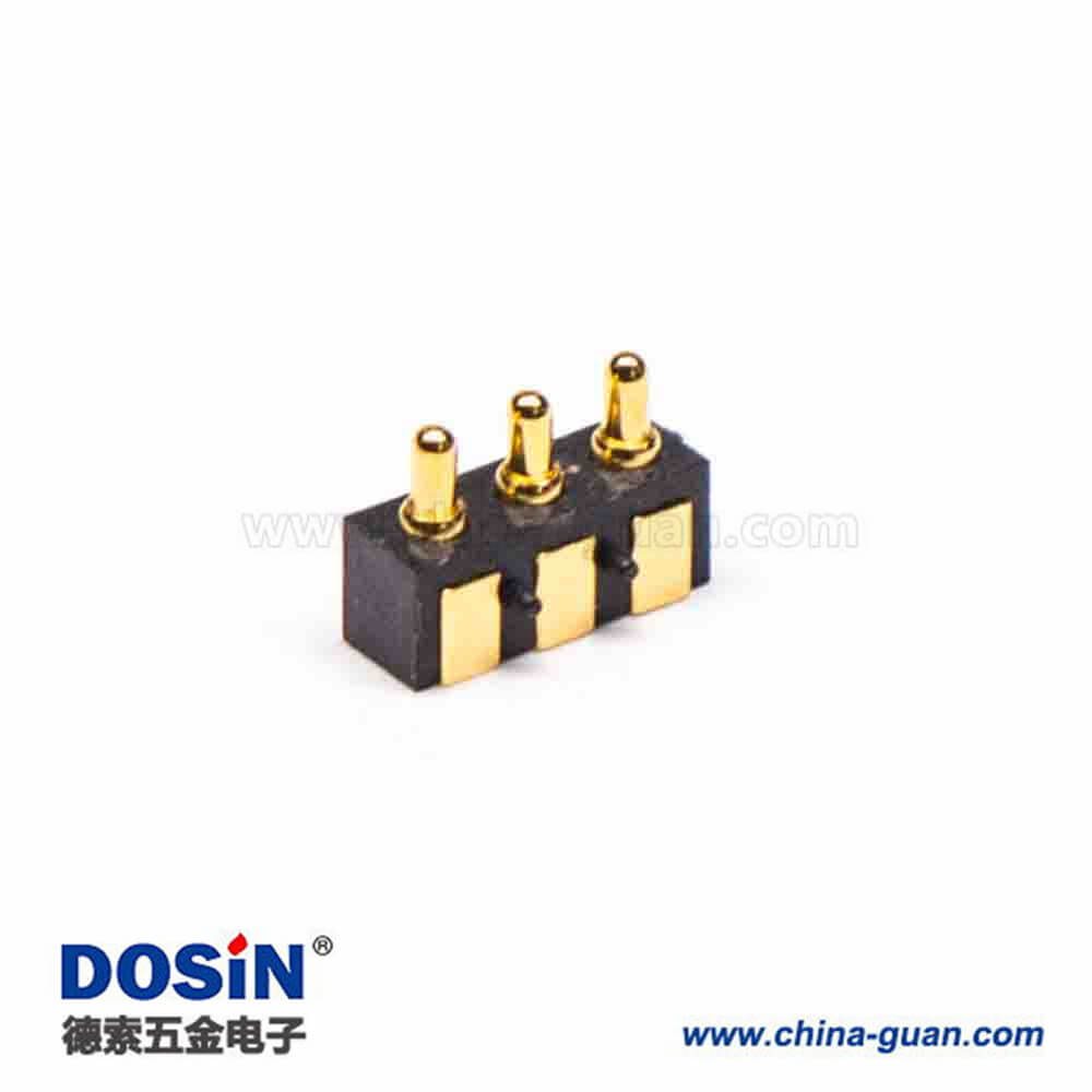 料號:DOSIN-903-2020 標簽:Pogo Pin連接器,多Pin系列F型,黃銅,鍍金,直式,3芯,間距2.5,平放焊接式