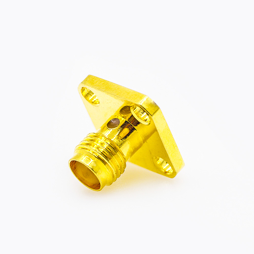 SMA連接器面板安裝座4孔法蘭母頭直式焊板用于PCB安裝