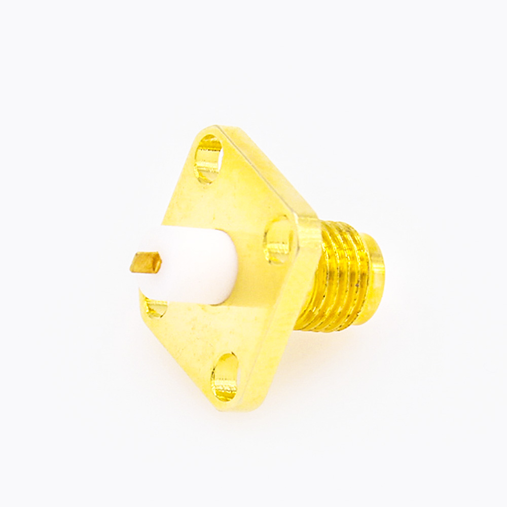 SMA面板母頭4孔法蘭連接器直式PCB安裝焊板