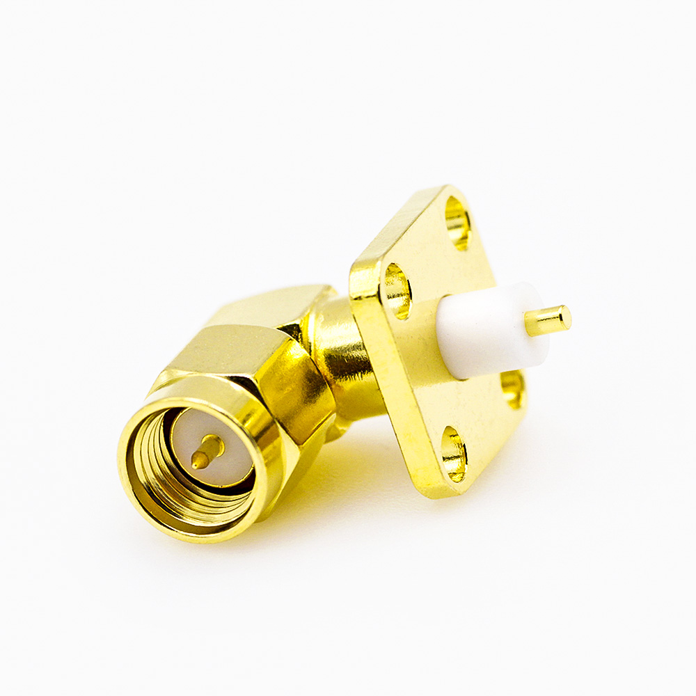 SMA 4孔公頭連接器彎式法蘭安裝用于PCB安裝焊板