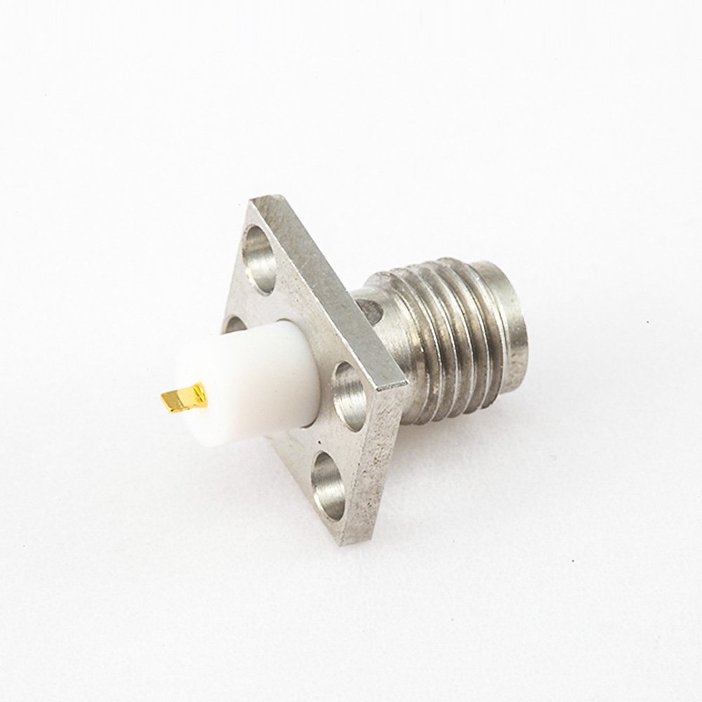 PCB安裝SMA連接器焊板母頭直式面板安裝4孔法蘭