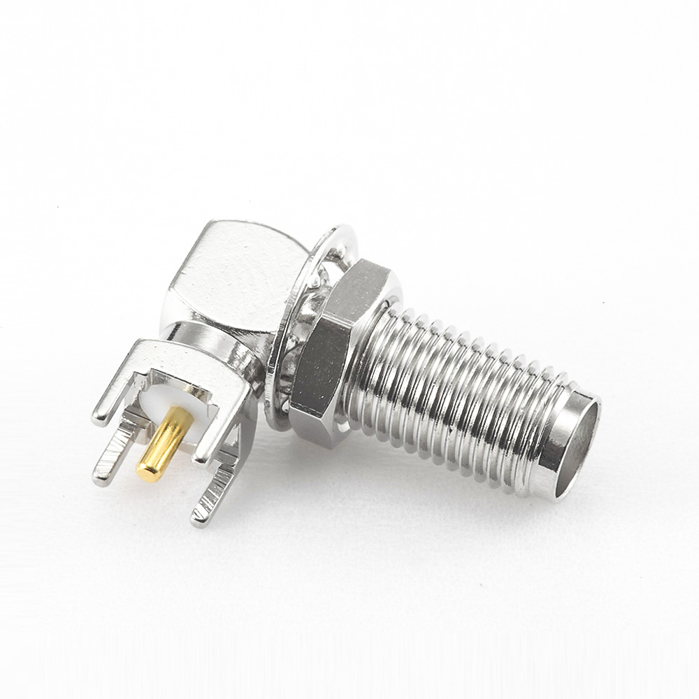 SMA母頭PCB面板安裝連接器前鎖穿墻彎插