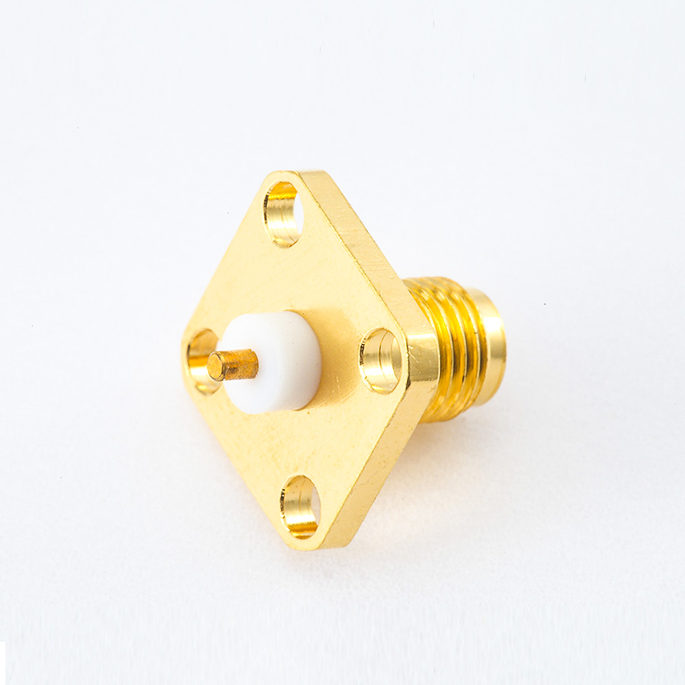 PCB SMA連接器母頭直式面板安裝焊板4孔法蘭