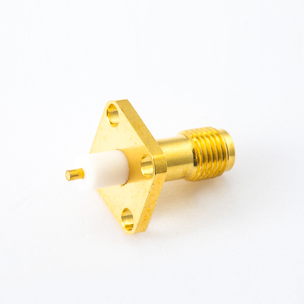 SMA母頭直式連接器面板安裝座4孔法蘭焊板用于PCB安裝